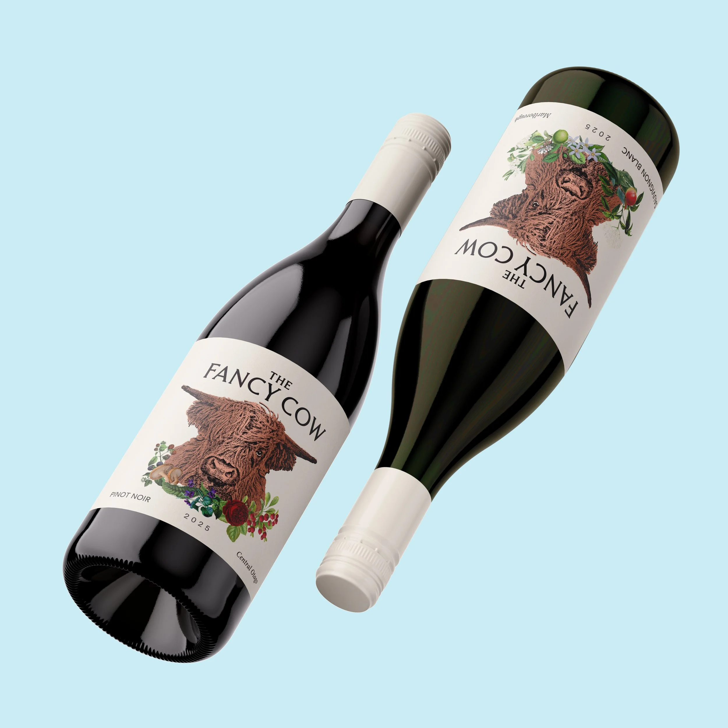 The existing brand character, Fanta the Highland Cow, became the natural hero from the existing brand — acting as a recognisable and ownable anchor across the range. The vision was to build a series that felt cohesive, memorable, and uniquely “Fancy Cow,” while celebrating the individuality of each wine.